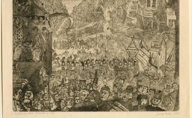 Diese Radierung verweist auf das berühmte Gemälde von James Ensor (1860-1949) aus dem Jahr 1888 mit demselben Titel.