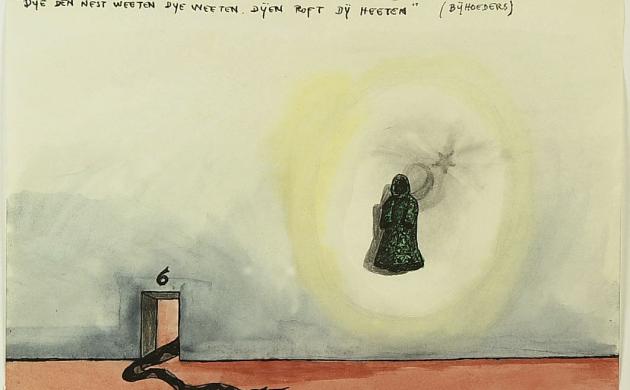 Sie finden im Kupferstichkabinett auch Werke von Jan Fabre. Diese Zeichnung ist Bestandteil einer Serie aus dem Jahr 1994, von der sich vier Arbeiten im Besitz des Kupferstichkabinetts befinden. Das Motiv des hier dargestellten Imkers kommt in Fabres Oeuvre des Öfteren vor.