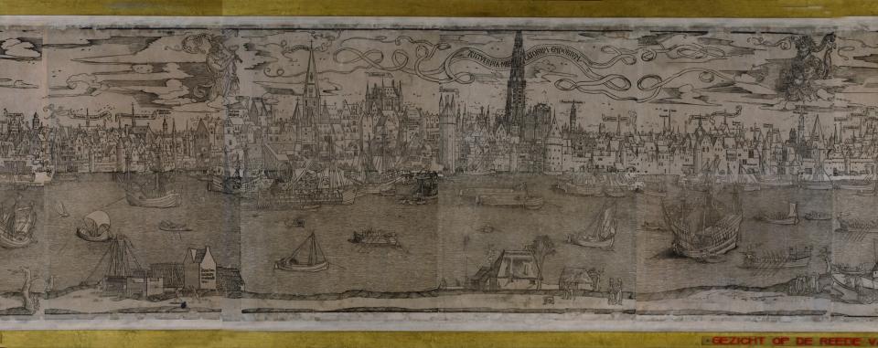 Es handelt sich hier um eine der ältesten bekannten Stadtansichten. Man sieht ein Stück Antwerpen: die Anlegestellen für die Schiffe, den Stapelplatz (Werf) mit Kran, die Türme der Stadt, die Kais an der Schelde, die wichtigsten profanen und religiösen Gebäude,… Alles wurde realistisch dargestellt und sogar beschriftet.