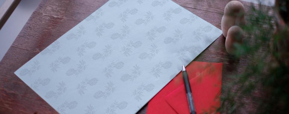 Stuur dit jaar met Valentijn een liefdesbrief op briefpapier geinspireerd op onze onuitputtelijke collectie houtblokken. An Eisendrath (Studio Anorak) ontwierp het briefpapier.