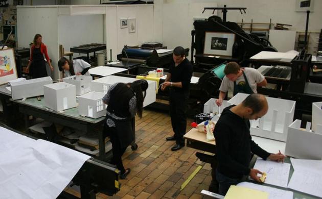 16.10.2011 - 27.11.2011 | Het atelier Vrije Grafiek van het RHoK (Academie Beeldende Kunsten Etterbeek) ging aan de slag met het Museum Plantin-Moretus. De studenten bouwden eerst het hele museum op schaal na in een modulaire maquette. Ze onderzochten dan een ruimte naar keuze en maakten er een grafische interpretatie van. Die verwerkten ze in de maquette.
