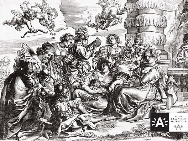 In een mooie tuin geniet een adellijke, modieus geklede groep van muziek en elkaars gezelschap. De liefdestuin is één van de meesterwerken van de Rubens-grafiek. De prent is een afgeleide van een beroemd schilderij van Peter Paul Rubens dat nu in het Prado in Madrid hangt. Christoffel Jegher maakte de houtsnede naar het ontwerp van de barokmeester. Vanaf 1625 werkte Jegher in de uitgeverij van de familie Moretus. Peter Paul Rubens ontmoette hem waarschijnlijk hier voor het eerst.