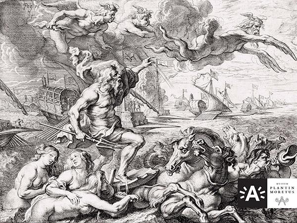 Neptunus, in zijn strijdwagen met zeenimfen, verjaagt de noordenwind Boreas. In de verte vaart een oorlogsvloot. Deze ets is gemaakt door Theodoor Van Thulden naar een ontwerp van Peter Paul Rubens. Het originele schilderij sierde de welkomstboog tijdens de triomfantelijke intocht van Ferdinand van Oostenrijk in Antwerpen. Ferdinand, door de koning van Spanje aangeduid als gouverneurd van de Nederlanden, maakt zijn Blijde Intrede op 17 april 1635.