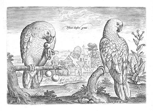 Twee papegaaien uit de reeks Avium vivae icones