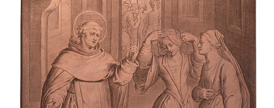 Toch is de koperplaat met deze afbeelding een mooie toevoeging aan de collectie. Naast de schetsen voor de reeks over het leven van Thomas van Aquino, bewaart Museum Plantin-Moretus ook de gedrukte prenten. Dankzij de koperplaat is het productieproces van ontwerp tot gravure compleet. Bovendien is dit de enige gekende koperplaat van de reeks.
