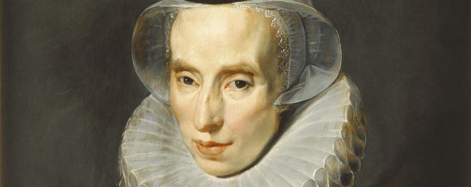 Martina is hier door Rubens afgebeeld in donkere kledij uit de 16de eeuw. De hoge molensteenkraag, kenmerkende schouderwrongen, typische sneetjes in de stof, zware vergulde ketting en fijn afgewerkte kant tonen een zakenvrouw uit de rijke burgerij die niet met zich laat sollen.