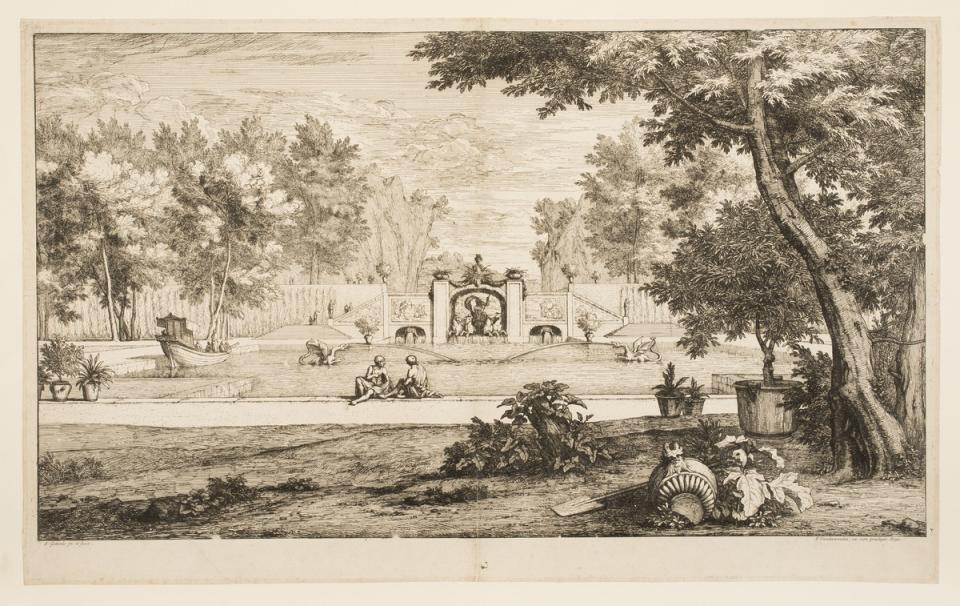 Abraham Genoels (1640-1723), graveur. Zicht op een baroktuin. Ets aquatint, vernis-mou. PK.OP.19960