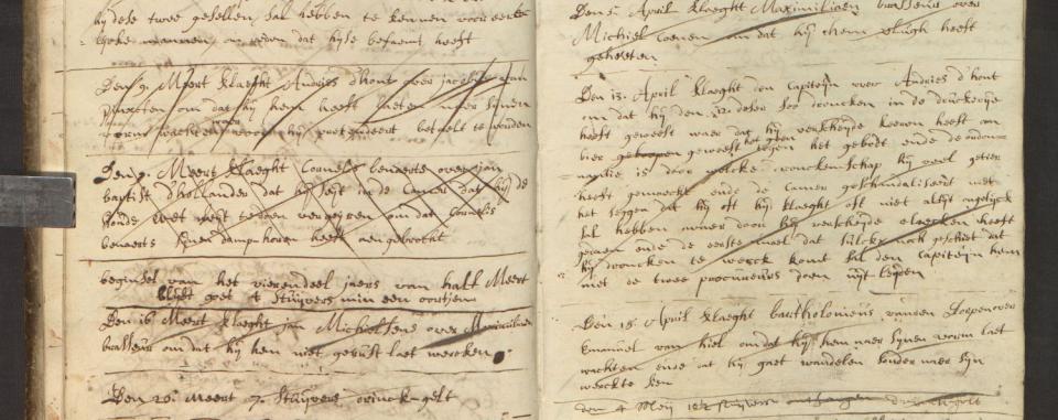 De eerste klacht van de kapitein over de dronkenschap van Andries d’Hondt, 13 april 1715 (MPM Arch. 264, Klachtenboek 1713-1769, fol. 8 recto-9 verso)