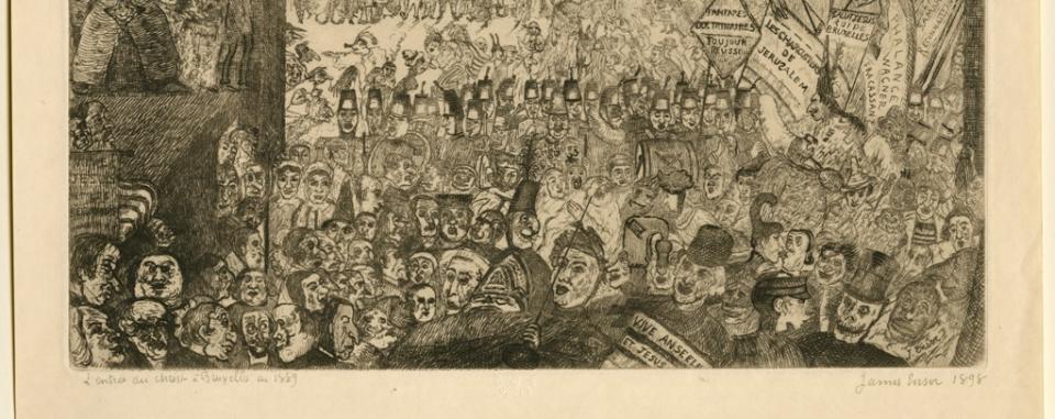Deze ets is geïnspireerd op het beroemde schilderij van James Ensor (1860-1949) met dezelfde titel uit 1888. Het schilderij werd in 1987 aangekocht door het Getty Museum in Los Angeles.