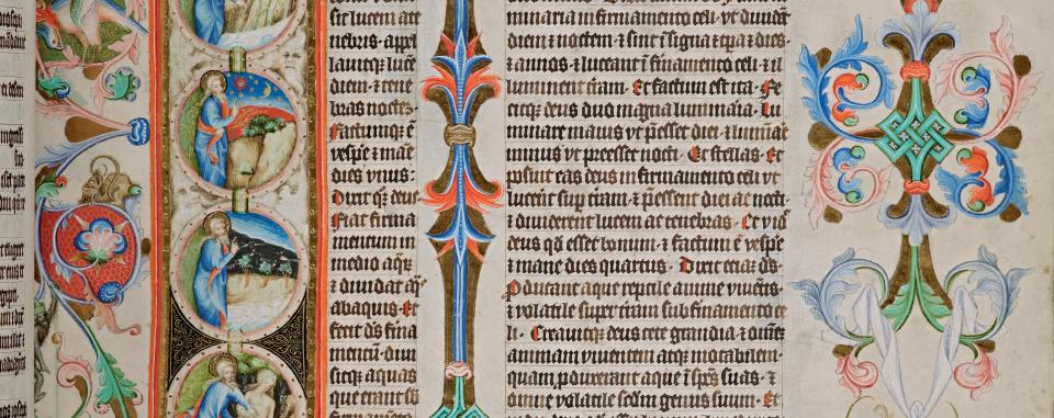 Deze twee bijbelvolumes werden in of na 1805 verworven. Het zijn de topvoorbeelden van verluchte handschriften in de verzameling die Plantin en de Moretussen aanlegden.