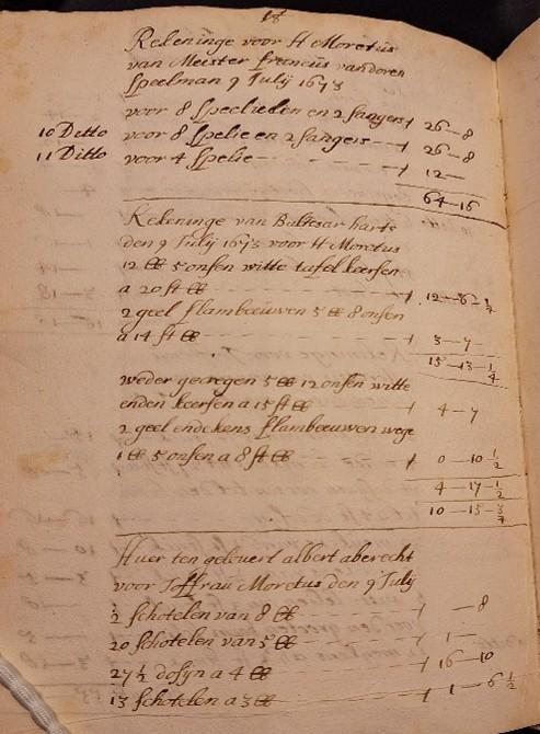 Alles bij mekaar zorgde gastheer Balthasar II voor een uitgebreid banket in een mooi aangeklede ruimte waarin het aan niets ontbrak. En dat mocht wat kosten. De Moretussen gaven ongeveer 1700 gulden uit. Dat is zo’n 900 keer het dagloon van hun hofmeester.