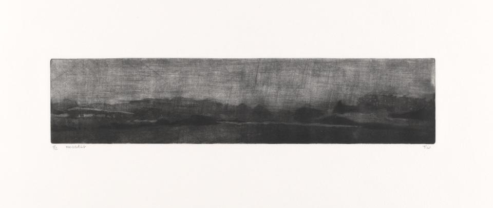 In haar werken van mezzotint primeert de zoektocht naar vorm en spanning. Deze beelden zijn vaak picturaal opgebouwd met een prachtige waaier aan rijke toonschakeringen tussen zwart en wit.