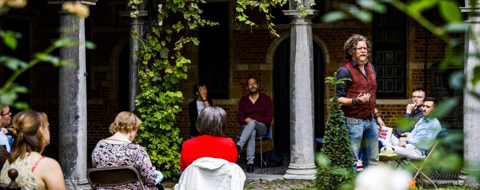 “De tentoonstelling is visueel ingesteld: gericht op het aanschouwen van de waanzinnige details in de prenten. Het is een echte tijdreis geworden! Om de bezoeker mee te slepen in het leven van de Italiaanse auteur, ga ik in deze audiogids het gesprek aan met ‘Lowijs Guicciardijn’ (de Vlaamse naam van Guicciardini, red.). Ik spreek hem letterlijk aan: dat geeft een subjectieve twist aan de tentoonstelling. Lowijs is getuige en deelnemer, als bij een vertelsessie rond een knetterend haardvuur. De bezoeker loopt ondertussen rond en voelt zich ook aangesproken. Ik ben hier de man die meekijkt over de schouder en door middel van de nodige subjectiviteit ook de luisteraar doet nadenken.”
