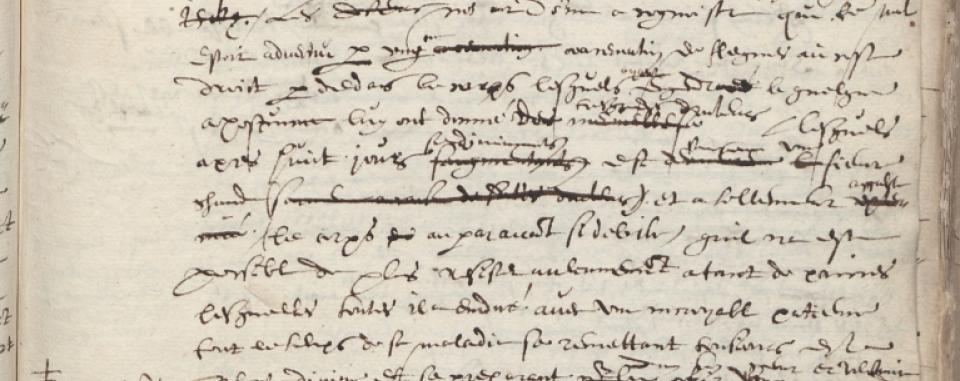 Nous aurons achevé le Martyrologium Romanum avec les annotations de Caesar Baronius, ne sachant si ce livre est pour l’estude de V. S. comme scaij sera celluy des Annales ecclésiastiques lequel estant fini ne fauldraij d'envoijer. Jusques a présent n'avons rien entendu de l'assignation des quatre cents florins laquelle Monssr le bailly a rapporté avec soij, dont mon beau père a qui Dieu face mercy pardevant avoit baillé sa quistance.