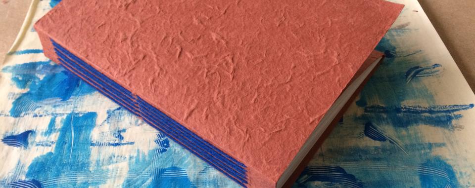 - Snijd je omslagpapier uit dik handgeschept papier. Snij je kaft op de opgegeven afmeting 46 cm x 21,6 cm. Let op dat je alles precies snijdt en dat je hoeken recht zijn.