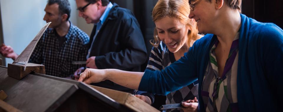 "Wij zijn een team van vijf vrijwilligers en hebben een achtergrond in boekbinden, restauratie en papierrestauratie (...) restauratie van de inkomende brieven Plantin en de vroege Moretussen, tussen 1550 en 1650."