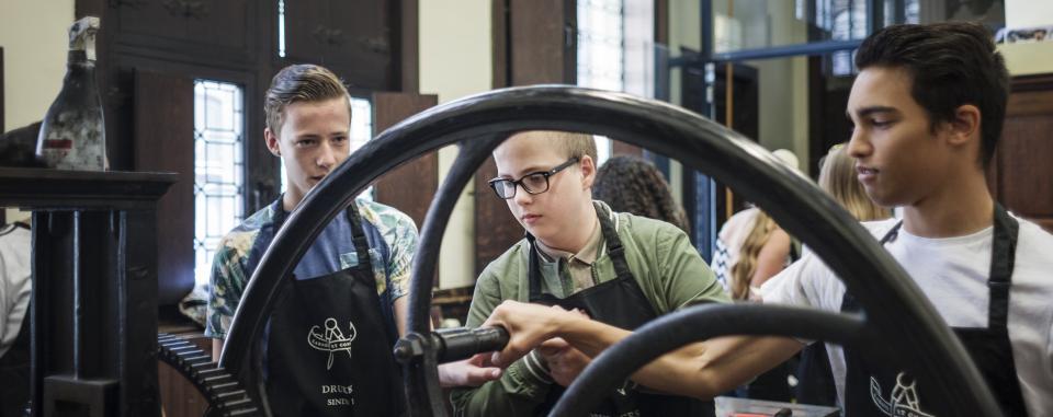 In het Museum Plantin-Moretus klinken de geschiedenis van boek, drukkunst en ondernemingszin door in het krakend eikenhout. Het hoeft dus niet te verbazen dat we ook regelmatig workshops rond boeken en drukken organiseren voor kinderen (in klasverband of vrije tijd), families en volwassenen. Het printlab, te bereiken via de binnentuin, kreeg al heel wat aspirant-drukkers, -etsers en -boekmakers over de vloer.