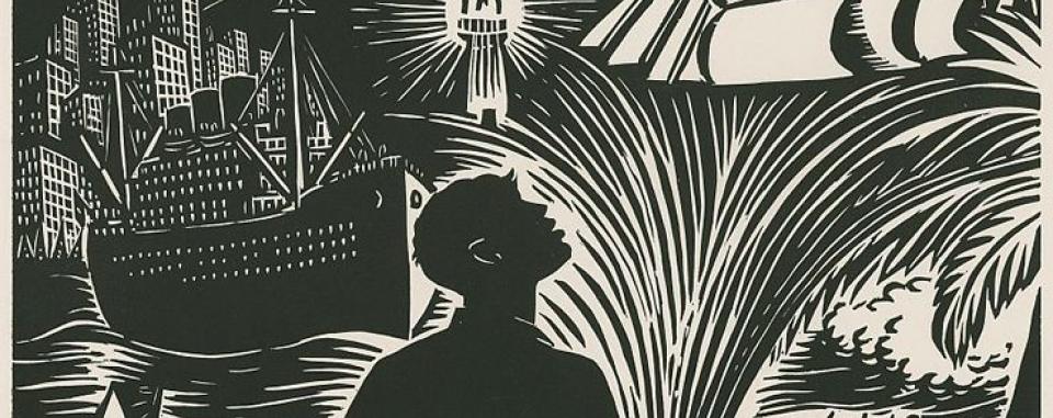 Centraal in deze tentoonstelling stond het beeld ‘L’aventure’ van Frans Masereel. Het vat de verschillende aspecten van migratie mooi samen: de fascinatie en tegelijk ook de schrik voor het onbekende; de droom over een nieuwe wereld met onbekende gevaren.