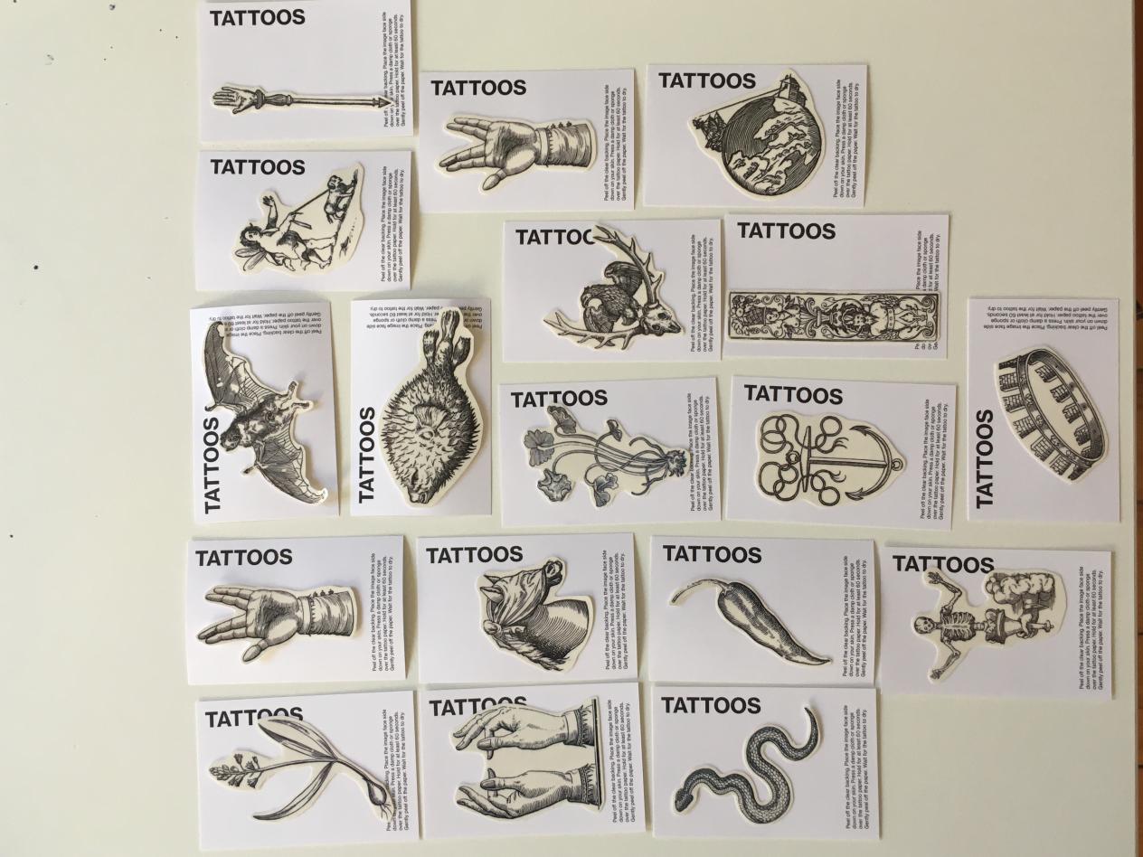 Voor deze plaktattoos werkte Museum Plantin-Moretus samen met https://redopapers.com/ .