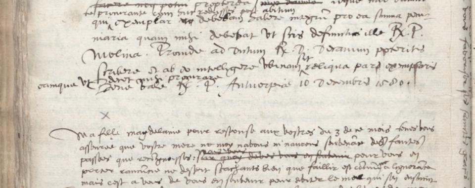 Ma fille Magdelaine, pour response aux vostres du 3 de ce mois, tenés vous asseuree que vostre mère ne moy n'avons ni n'aurons souvenance des fautes passées que recongnoissés pour vous en porter rancunne ne despit, scachants bien que faillir est commun a l'ignorance, mais c'est a vous de vous en souvenir pour éviter le mal qui s'en ensuict.