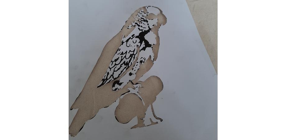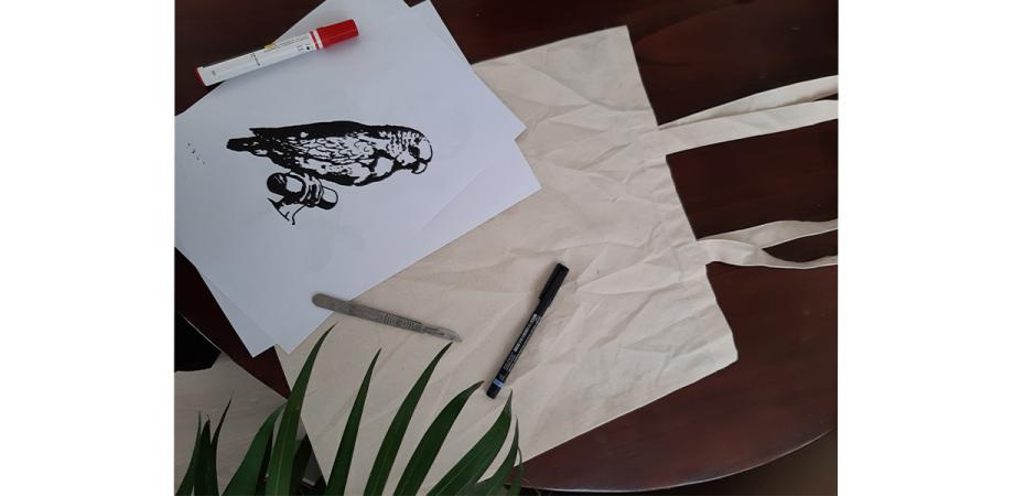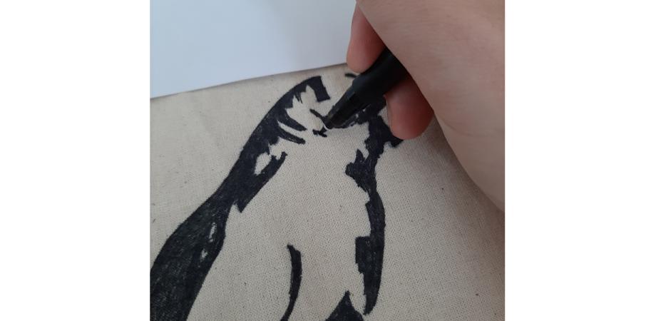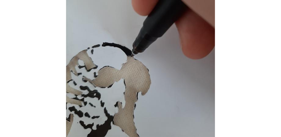- Bevestig je papier (exclusief zwarte delen) op een katoenen tas met plakband, zodat het vel papier op zijn plaats blijft zitten.