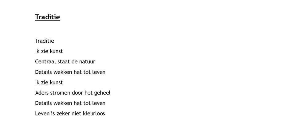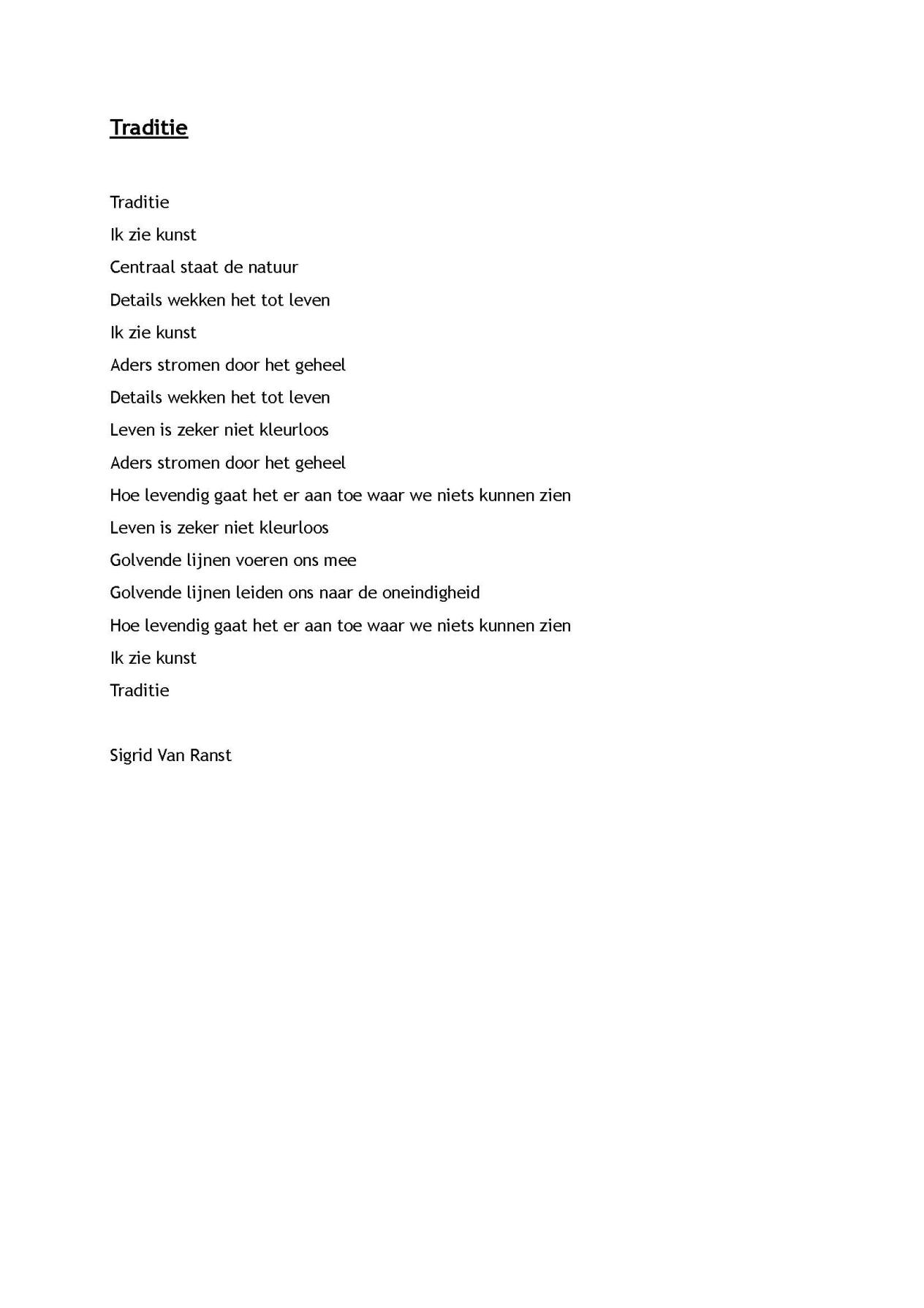 "Ik heb een kunstwerk uit de collectie gekozen dat het dichtst bij mijn eigen ideeën, interesses staat, waardoor ik er makkelijker een gevoel kon inbrengen. Ik heb gekozen om er een pantoum van te maken. Het lijnenspel, de rust en de eenvoud namen mij onmiddellijk volledig mee in de manier hoe ik mijn eigen werk ervaar."