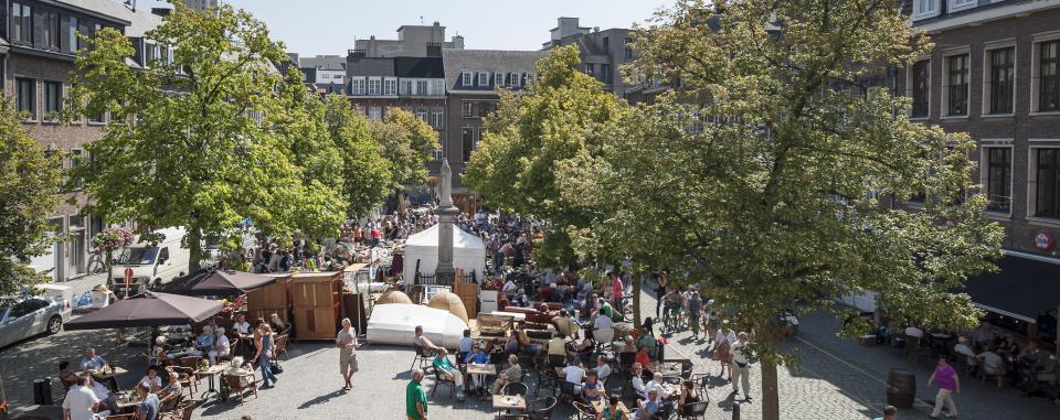 De Vrijdagmarkt heeft zijn naam niet gestolen. Elke vrijdagochtend verandert het plein in een veilingmarkt. Koopwaar van opkopers en antiquairs wordt dan per opbod verkocht.
