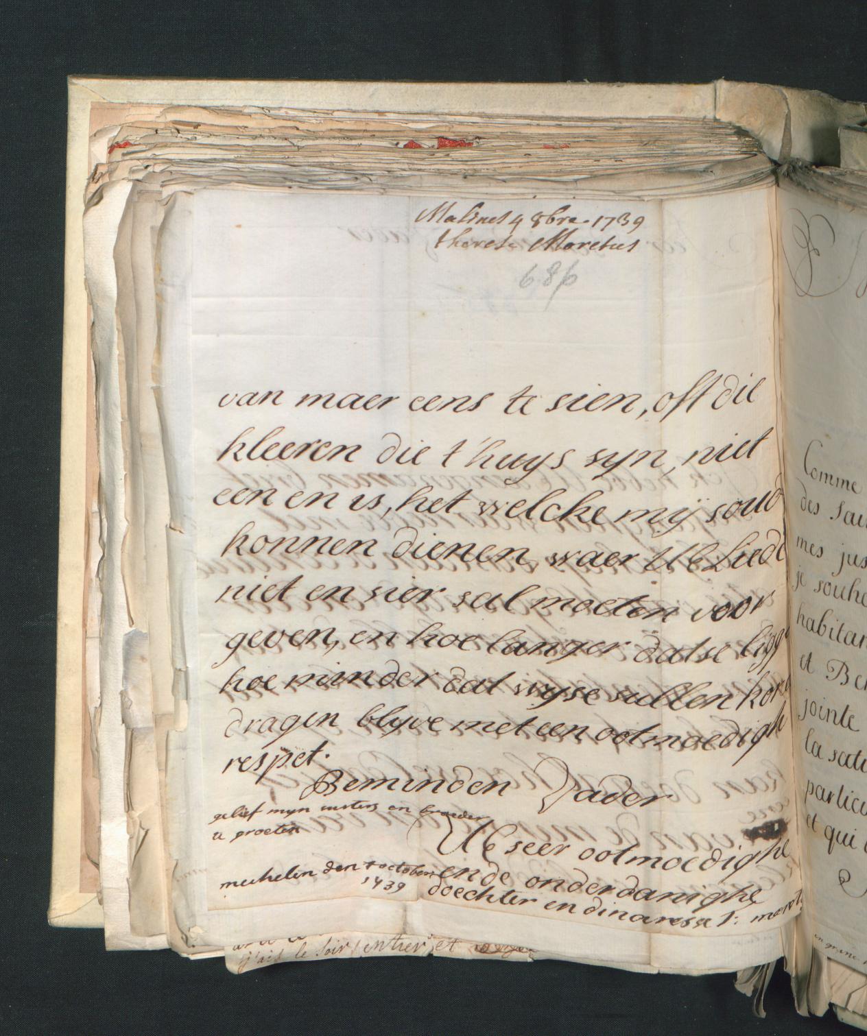 Brief van Maria-Theresia-Mechtildis Moretus aan haar vader Joannes Jacobus van 4 oktober 1739