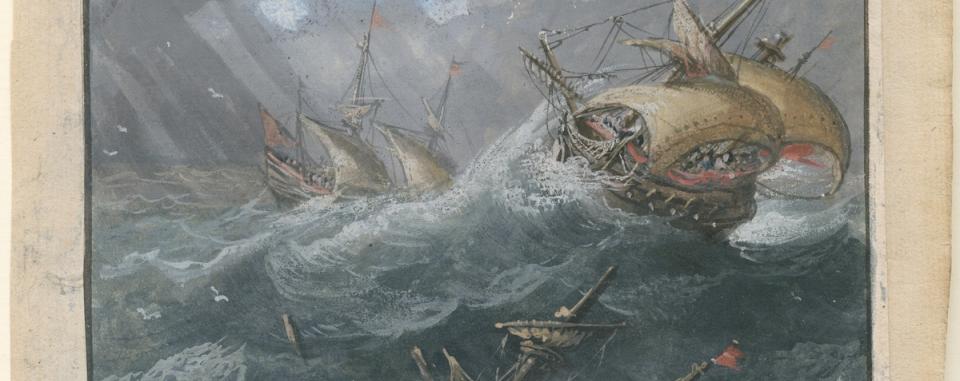 Zeilschepen in een storm, Bonaventura Peeters, 1633-1652