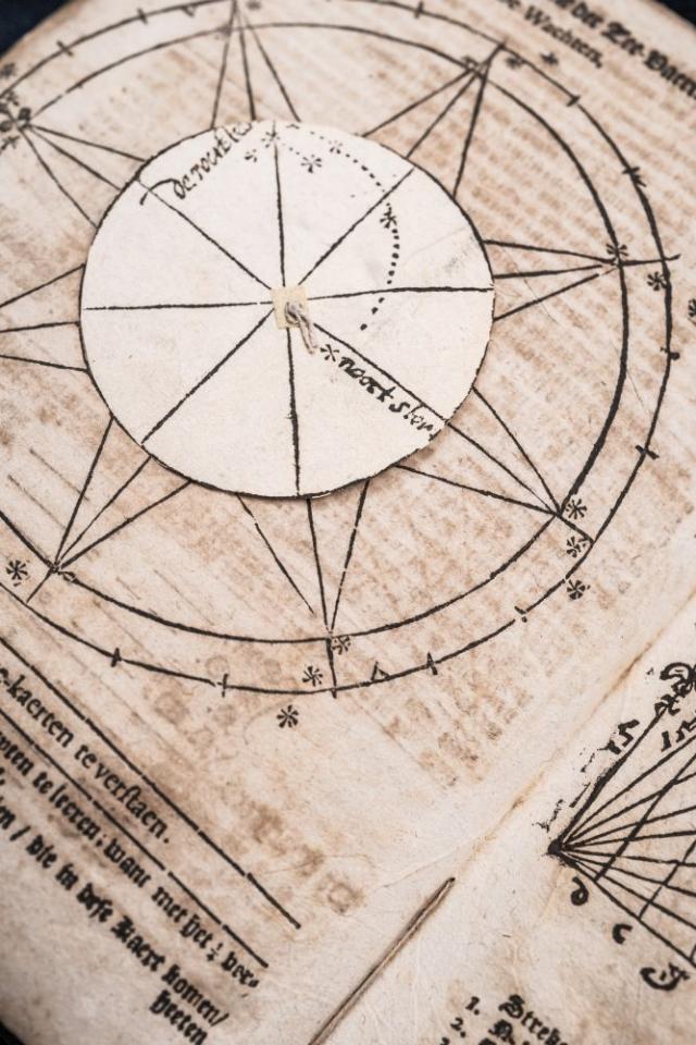 Van Loon: "De volvelle is een soort vroegmoderne app avant la lettre. Het is een papieren bewegend deel in een boek om allerlei berekeningen mee uit te voeren. Ze komen in dit boek voornamelijk voor als meet- en navigatie-instrument, vastgemaakt aan een pagina, dat je vaak met touwtjes kan bewegen of draaien. Met deze handige draaischijven maakten kapiteins op zee vroeger ingewikkelde berekeningen zoals je vandaag met een app op je smartphone doet."